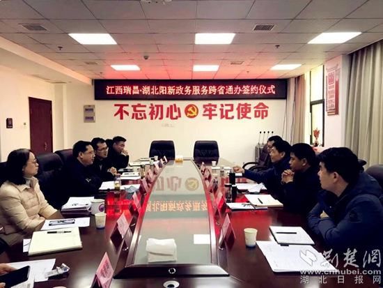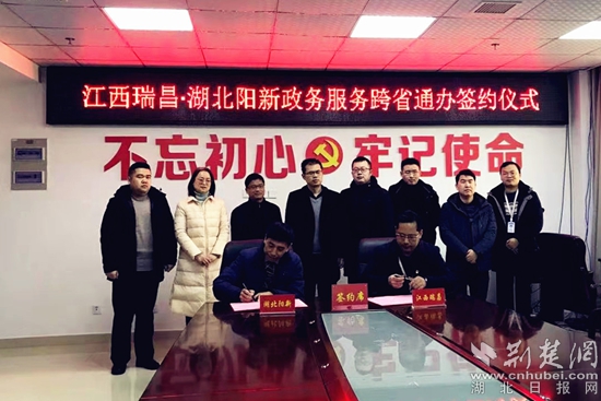 湖北陽(yáng)新和江西瑞昌簽署政務(wù)服務(wù) “跨省通辦”合作協(xié)議。(通訊員供圖)
