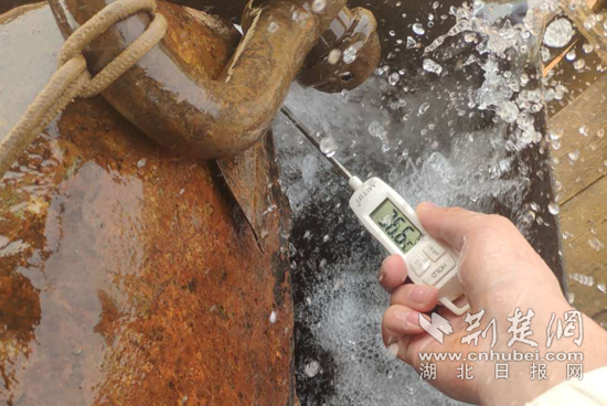 抽水試驗(yàn)現(xiàn)場測溫。(通訊員供圖)