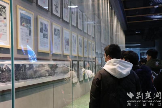 同學(xué)們認(rèn)真參觀航天發(fā)展史展覽。(通訊員供圖)