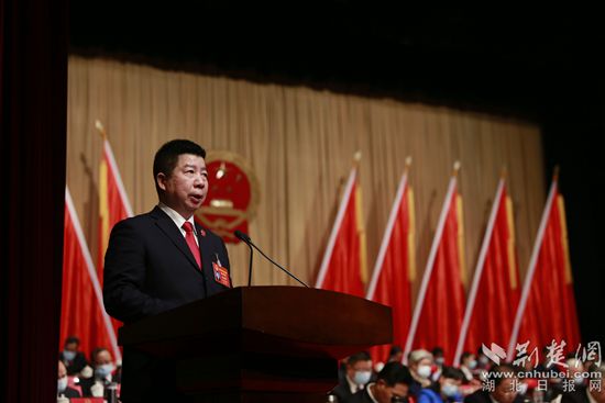 黃石市委副書記、市長吳錦作市人民政府工作報告。金康 攝