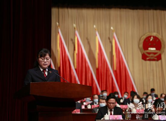 黃石市人民檢察院檢察長梁莉作市人民檢察院工作報告。金康 攝
