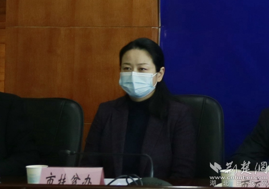 黃石市政府扶貧開發(fā)辦公室黨組書記肖婷通報全市脫貧攻堅工作情況。金康 攝