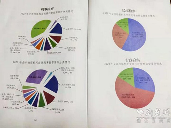 打開報告,除了傳統(tǒng)的文字材料外,報告以附件的形式,圖解2020年黃石檢察院工作,公布了黃石檢察院涉及刑事檢察、民事檢察、行政檢察以及公益訴訟檢察的大數(shù)據(jù)。
