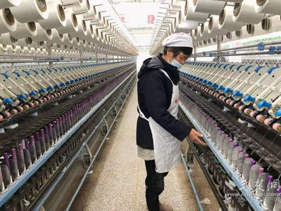 荊楚網(wǎng)客戶端—荊楚網(wǎng)消息(記者熊子璇 通訊員羅燕)1月26日,記者走進(jìn)湖北楓樹線業(yè)有限公司(以下簡稱“楓樹”)的生產(chǎn)車間,機(jī)器轟鳴、工人們戴著口罩,熱火朝天地在一排排飛速運(yùn)轉(zhuǎn)的機(jī)器前緊張忙碌著。