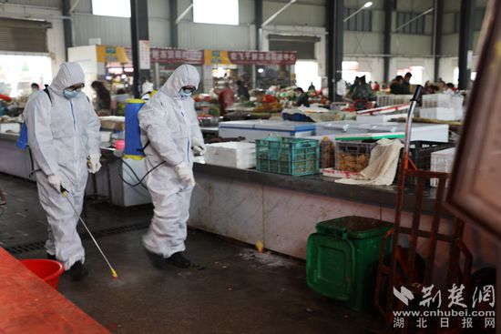 消防人員對農(nóng)貿(mào)市場進行消毒。通訊員 供圖
