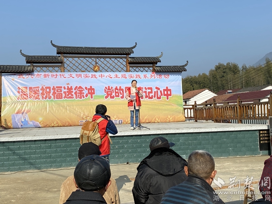 武穴市新時代文明實踐中心進(jìn)基層宣講“脫貧不忘感黨恩”好故事。(通訊員供圖)
