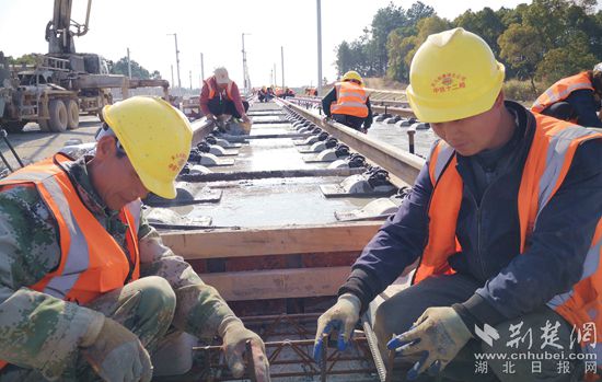 在位于黃梅縣高鐵新區(qū)黃梅東站項(xiàng)目施工現(xiàn)場(chǎng),伴隨著泵車的轟鳴,施工人員正在爭(zhēng)分奪秒進(jìn)行道岔道床板混泥土澆筑施工作業(yè),一派熱火朝天的繁忙景象。