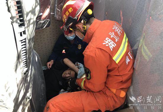 消防指戰(zhàn)員營救被困駕駛員。通訊員供圖