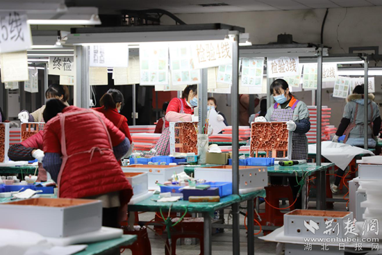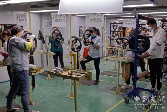 麻城市雙華內(nèi)飾工藝有限公司滿員開(kāi)工全力生產(chǎn)。 通訊員供圖