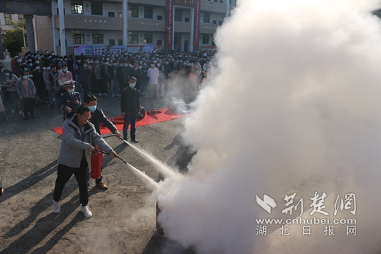 師生代表利用滅火器撲救油池火災(zāi)。(通訊員供圖)
