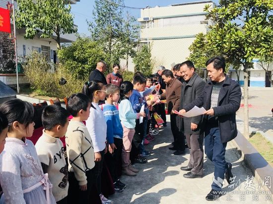 這是這所鄉(xiāng)村小學(xué)2021年度春季的開學(xué)典禮。與往年不同的是,此次開學(xué)典禮邀請(qǐng)全國(guó)脫貧攻堅(jiān)先進(jìn)個(gè)人、陽(yáng)新縣楓林鎮(zhèn)湖田村駐村工作隊(duì)隊(duì)長(zhǎng)兼第一書記胡三木作為特殊嘉賓,為全校師生作報(bào)告,激勵(lì)全校師生團(tuán)結(jié)奮進(jìn)。