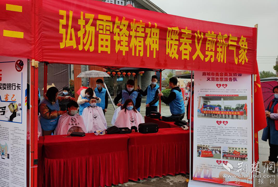 圖為麻城市義剪志愿服務隊為市民免費理發(fā)。通訊員供圖