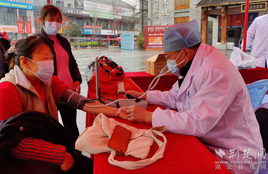圖為麻城市人民醫(yī)院新時代醫(yī)療志愿服務隊為市民開展義診活動。通訊員供圖