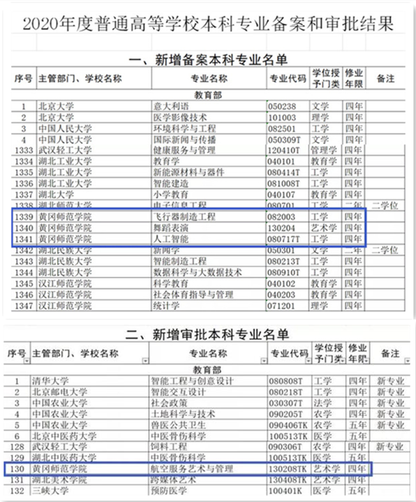 荊楚網(wǎng)(湖北日報網(wǎng))訊(記者熊子璇 通訊員呂小艷)近日,教育部印發(fā)《教育部關于公布2020年度普通高等學校本科專業(yè)備案和審批結果的通知》(教高函〔2021〕1號)。黃岡師范學院申報的飛行器制造工程、舞蹈表演、人工智能、航空服務藝術與管理四個本科專業(yè)獲批。