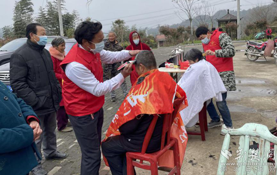 志愿者們?yōu)橛行枰睦先肆x務(wù)理發(fā)。通訊員供圖