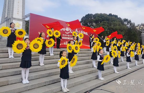 烈士紀(jì)念碑前,大家莊嚴(yán)宣誓,重溫入黨誓詞。巾幗志愿者、黃岡巾幗黨史宣講員鄒芬進(jìn)行了飽含深情的宣講,帶領(lǐng)大家追懷往昔,聆聽歷史。大合唱《唱支山歌給黨聽》,紅色快閃《沒有共產(chǎn)黨就沒有新中國》把活動(dòng)推向了高潮。儀式上,還為“巾幗志愿黨史宣講隊(duì)”授旗。
