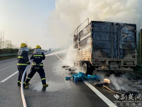 消防員立即鋪設水槍陣地對火勢進行全面壓制,對油箱進行冷卻降溫,防止油箱過熱發(fā)生爆炸,并配合現(xiàn)場交警部門做好現(xiàn)場警戒,經(jīng)過40分鐘左右的全力撲救,火勢逐漸被控制,08點14分左右,大火被成功撲滅,車上裝載的貨物基本被燒毀,所幸事故未造成人員傷亡。