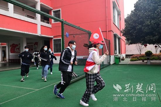 警報響起,師生們迅速逃離“火場”。(通訊員供圖)