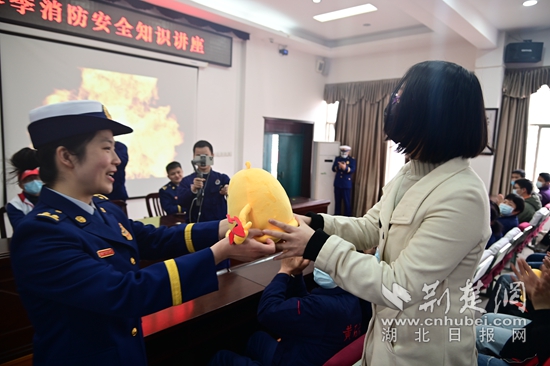 在消防課堂上,消防宣傳員結合校園火災特點與師生互動。(通訊員供圖)