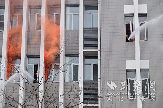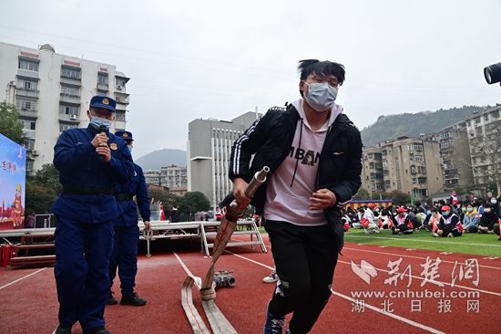 室內(nèi)消火栓使用實操。(通訊員供圖)
