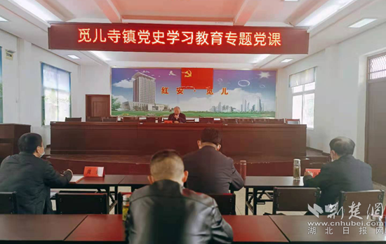 紅安縣紅色宣講員胡耿講黨史。通訊員供圖
