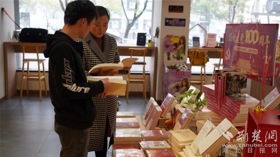 圖為該市新華書(shū)店設(shè)置黨史圖書(shū)展臺(tái)便于讀者參閱和購(gòu)買。通訊員供圖