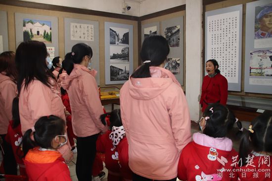 麻城市幼兒園師生認真聆聽講解員講述革命故事。通訊員供圖