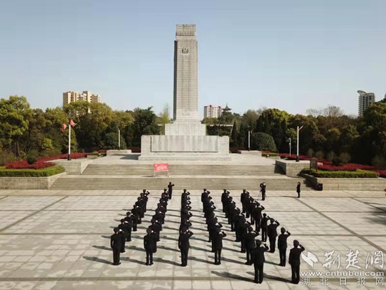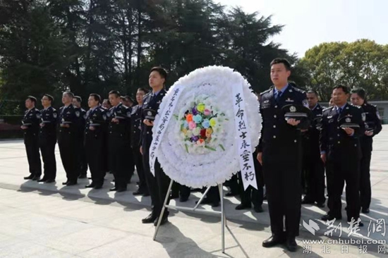 在鄂東南革命烈士陵園的革命烈士紀(jì)念碑前,民警們整齊列隊(duì),懷著崇敬的心情敬獻(xiàn)花圈,集體脫帽默哀,追憶英烈們舍生取義的崇高品德,并重溫入黨誓詞,牢記初心使命。