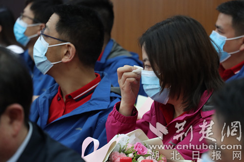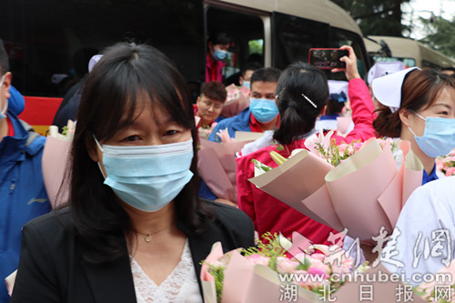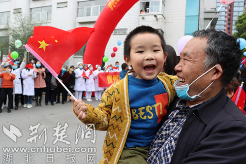 跟王宏興一樣,當(dāng)天在鄂州市中心醫(yī)院有上千人列隊,歡迎親人回家。一些住院的患者聞訊,雖不能下樓迎接,也各自在住院樓樓上揮舞著手中的紅旗吶喊著,迎接“白甲”英雄。