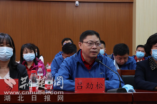 貴州省援鄂醫(yī)療隊代表團團長、貴州省醫(yī)療保障局黨組書記、局長呂勁松感言交流。記者胡小軍 攝
