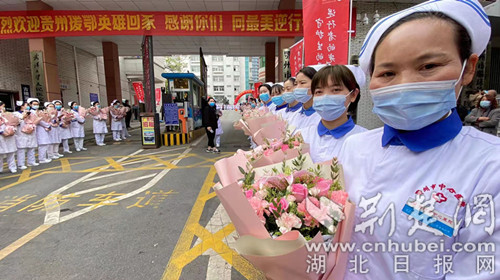 “去年的今天,貴州援助鄂州醫(yī)療隊隊員離開鄂州的時候,我當(dāng)時正在社區(qū)參加防疫,沒有來得及相送。他們這次回家,我一定要過來迎接”,64歲的退休老人王宏興揮舞著手中的紅旗說。