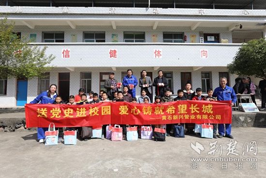 荊楚網(wǎng)(湖北日報(bào)網(wǎng))訊(通訊員楊亞慧)3月24日,黃石新興到陽新縣木港鎮(zhèn)棗園村小學(xué),開展以“送黨史進(jìn)學(xué)校 愛心鑄就希望長城”為主題的愛心活動(dòng),通過對(duì)留守兒童的關(guān)愛、關(guān)心,進(jìn)一步踐行社會(huì)責(zé)任,鑄就青少年兒童的希望長城。