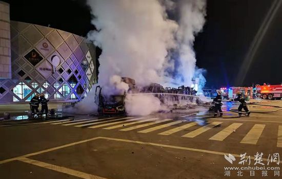 3月22日深夜23時(shí)12分,黃岡市麻城市滬蓉高速中管驛服務(wù)區(qū),一輛滿載貨物的大掛車突發(fā)自燃,由于事發(fā)地在服務(wù)區(qū),如不及時(shí)撲救,后果不堪設(shè)想。麻城市消防救援大隊(duì)接到報(bào)警后立即出動(dòng)2車和10名消防指戰(zhàn)員火速趕赴現(xiàn)場(chǎng)處置。