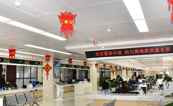 黃梅縣政務(wù)服務(wù)中心,工作人員正在為群眾提供窗口服務(wù)。通訊員供圖