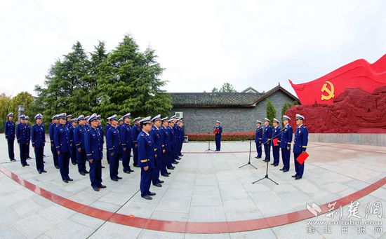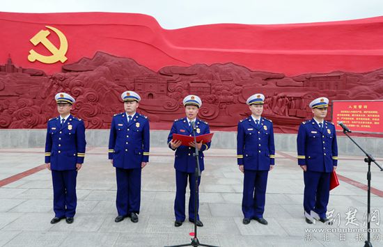 黨員廣場上,黃岡市消防救援支隊的指戰(zhàn)員們正在開展“緬懷革命先烈,回望初心使命”黨史學(xué)習(xí)主題實踐活動,他們高聲奏唱國歌,齊聲重溫入黨誓詞,在紅色勝地的歷史現(xiàn)場,每句歌詞和誓詞中每個字都被賦予了深沉的情感召喚,似有千鈞之重。