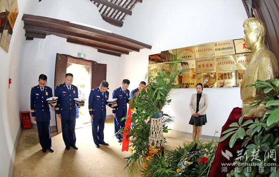 在陳潭秋故居紀(jì)念館內(nèi),全體指戰(zhàn)員共同瞻仰了陳潭秋烈士銅像,敬獻花籃,緬懷默哀。隨后,大家跟隨講解員的步伐,通過一張張歷史圖片、真實文物和一段段革命故事,走進陳潭秋短暫而輝煌的一生,走進黨史的紅色底蘊中去。