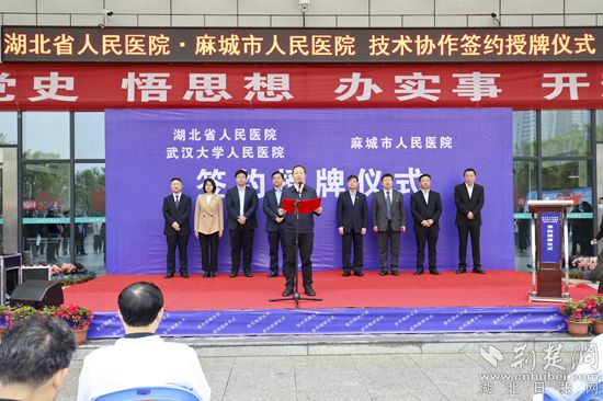 湖北省人民醫(yī)院(武漢大學(xué)人民醫(yī)院)麻城醫(yī)院簽約授牌現(xiàn)場。通訊員供圖