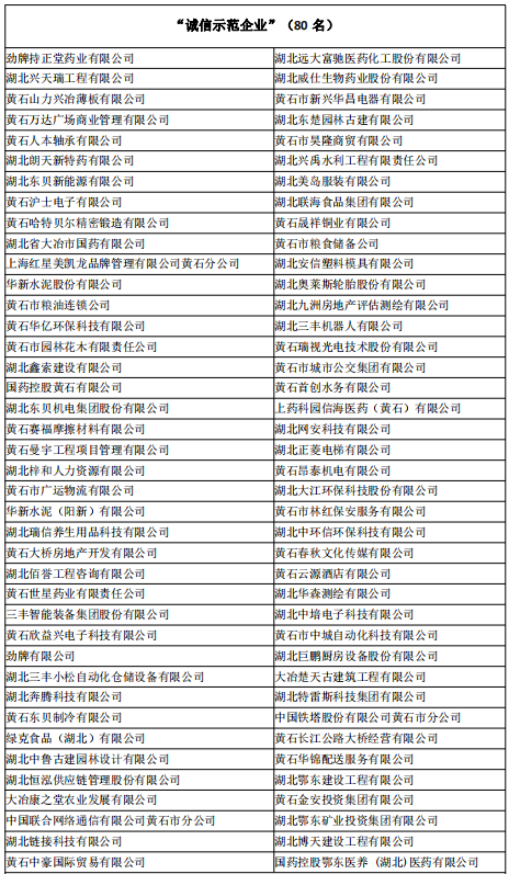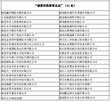 附:黃石首屆誠信示范企業(yè)、誠信示范培育企業(yè)具體名單