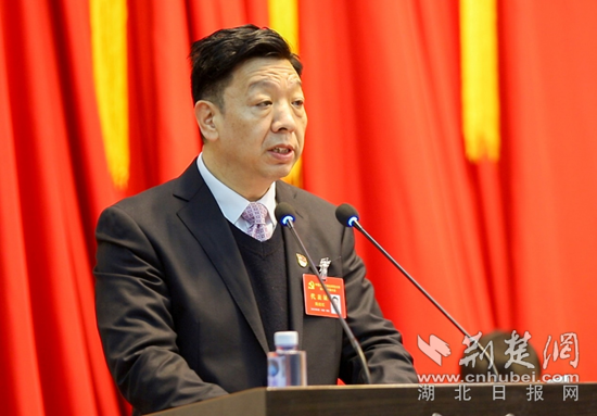 湖北師范大學(xué)黨委書(shū)記周啟紅作大會(huì)報(bào)告。(通訊員供圖)