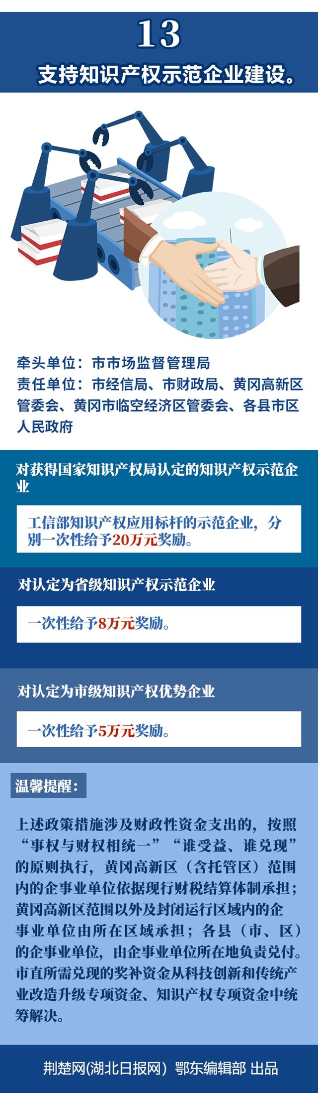 荊楚網(wǎng)(湖北日報(bào)網(wǎng))訊(記者劉璐、王焱堯)為深入實(shí)施創(chuàng)新驅(qū)動(dòng)發(fā)展戰(zhàn)略,以科技創(chuàng)新引領(lǐng)黃岡高質(zhì)量發(fā)展,4月6日,黃岡市發(fā)布《關(guān)于支持科技創(chuàng)新若干政策》,從技術(shù)創(chuàng)新平臺建設(shè)、科技孵化平臺建設(shè)、企業(yè)申報(bào)高新技術(shù)企業(yè)等13個(gè)方面,為市場主體提供“真金白銀”的支持。政策的亮點(diǎn)都有哪些?荊楚網(wǎng)(湖北日報(bào)網(wǎng))記者帶您一圖讀懂。