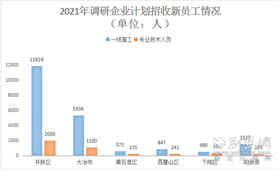 黃石各地企業(yè)計劃招收新員工數(shù)據(jù)分析。(黃石市勞動就業(yè)管理局提供)