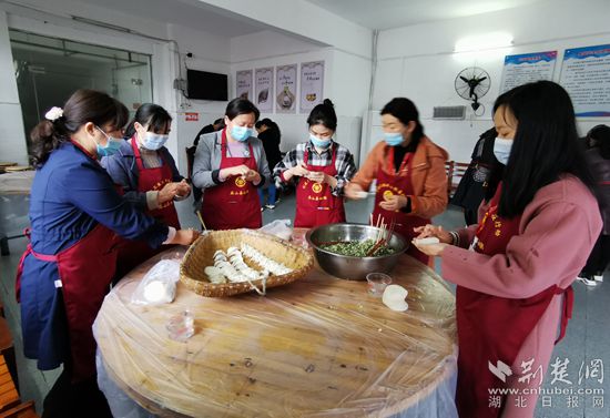 縣婦聯(lián)志愿服務(wù)隊(duì)為福利院老人包餃子。通訊員供圖