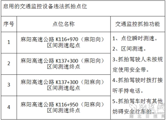 啟用的交通監(jiān)控設(shè)備違法抓拍點(diǎn)位。資料來(lái)源:湖北黃岡交警微信公眾號(hào)