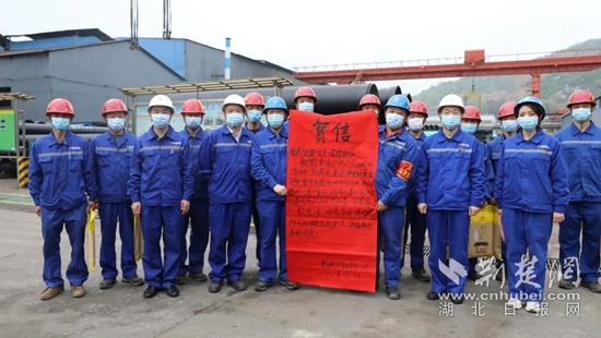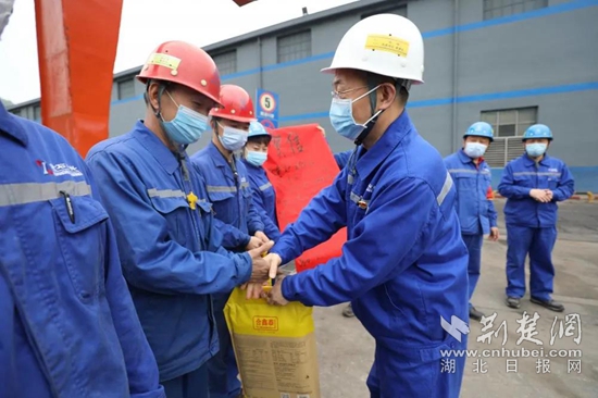 公司領(lǐng)導(dǎo)層為生產(chǎn)指標(biāo)完成突出的單位發(fā)放賀信。(通訊員供圖)