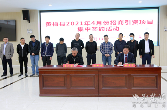 黃梅縣舉行4月份招商引資項(xiàng)目集中簽約活動。通訊員供圖