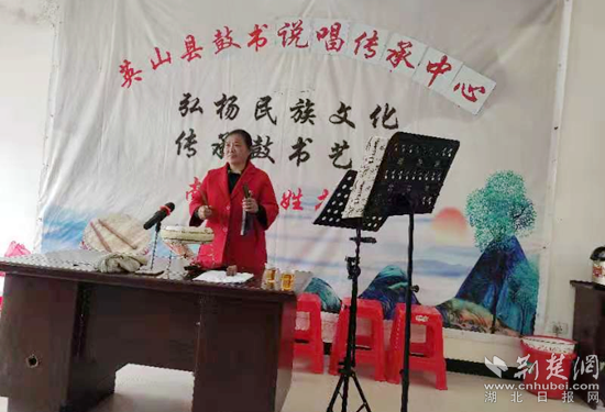 鼓書曾稱為“說善書”,表演核心是勸告人們盡忠行孝,在上世紀(jì)六七十年代是民間廣泛流傳的一種藝術(shù)形式,深受廣大群眾喜愛。為進一步加大黨史知識宣傳力度,英山縣將鼓書說唱傳承中心的57名成員分布在四個鄉(xiāng)鎮(zhèn)固定演出點,通過鼓書的形式進行宣講,目前中心成員通過說鼓書的形式參加宣講50多場次,受眾達10000余人。