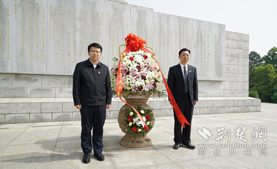 在陽新縣湘鄂贛邊區(qū)鄂東南革命烈士陵園,湖北師范大學(xué)向革命先烈敬獻了花籃。