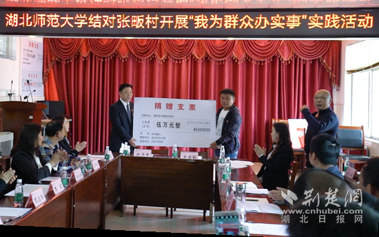 湖北師范大學(xué)黨委書記周啟紅代表學(xué)校向張畈村捐贈鄉(xiāng)村建設(shè)資金。通訊員供圖