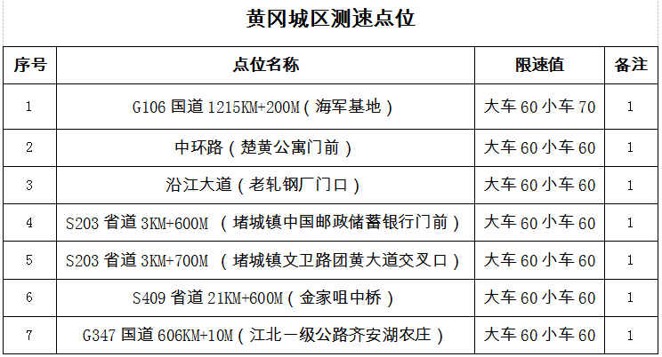 黃岡城區(qū)6大測速點(diǎn)位。通訊員供圖