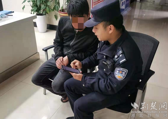 民警和張某仔細(xì)查看手機(jī)頁面。(通訊員供圖)